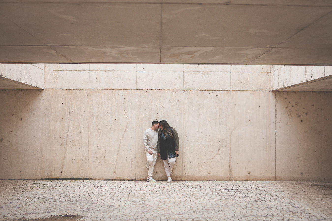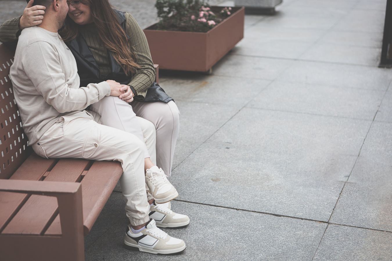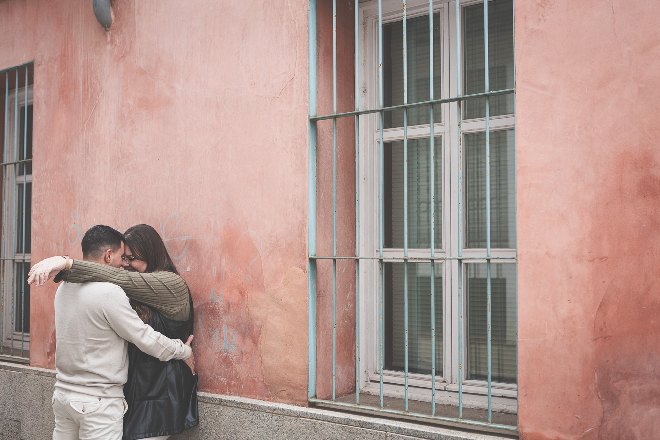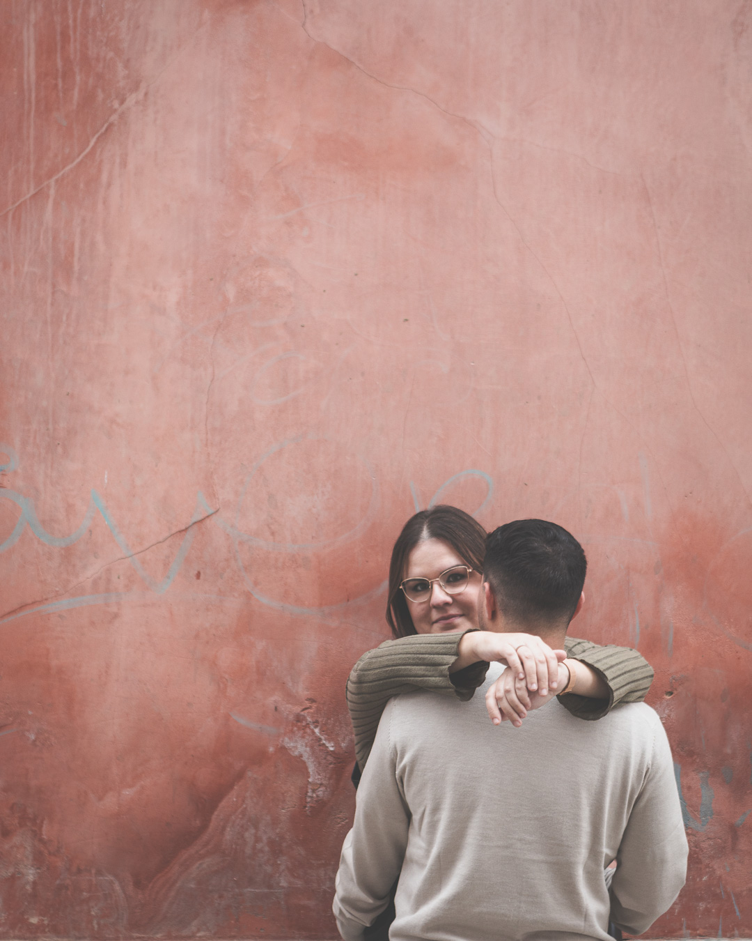 El día amaneció con un cielo encapotado y amenaza de lluvia, pero lejos de desanimarnos, aprovechamos la luz suave y el ambiente melancólico para darle un toque especial a la sesión. Comenzamos el recorrido en el Puente Romano, con el Guadiana reflejando la tenue claridad del cielo y regalándonos un escenario perfecto para capturar su complicidad. Entre miradas, risas y gestos espontáneos, cada imagen reflejaba la naturalidad y el cariño que los une. Las antiguas piedras del puente, que han resistido el paso del tiempo, parecían una hermosa metáfora de su relación.