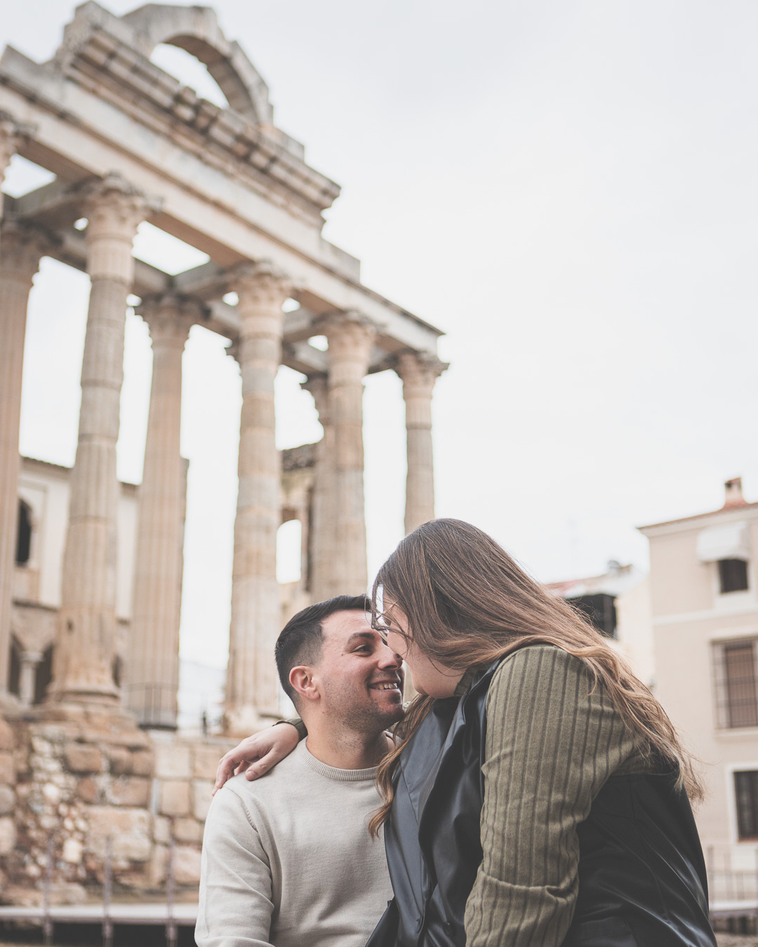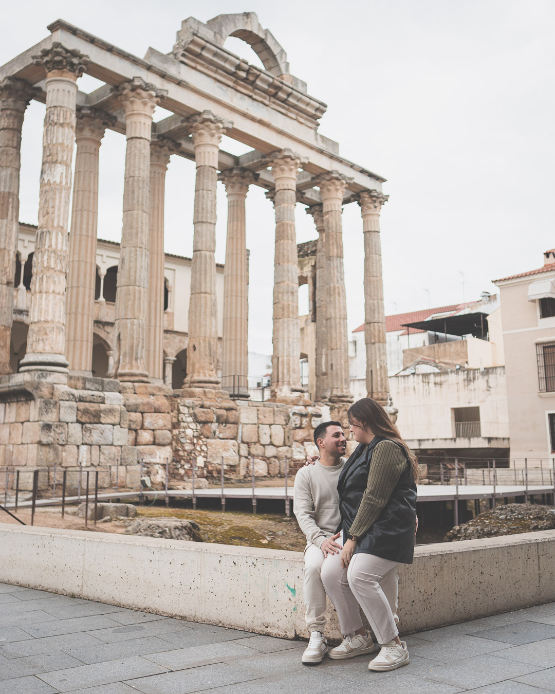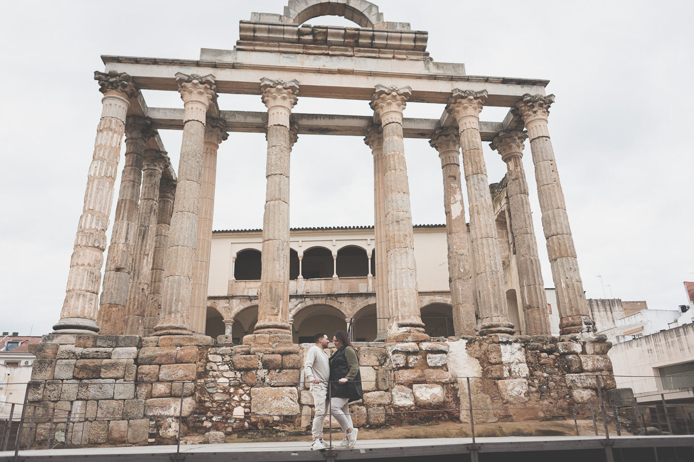 Nuestra última parada fue el Templo de Diana. Entre sus majestuosas columnas, la sesión cobró un aire mágico. La mezcla de lo antiguo y lo moderno, de la historia y el presente, creó el escenario ideal para cerrar la sesión con imágenes que transmiten la esencia de su amor: fuerte, auténtico y atemporal.