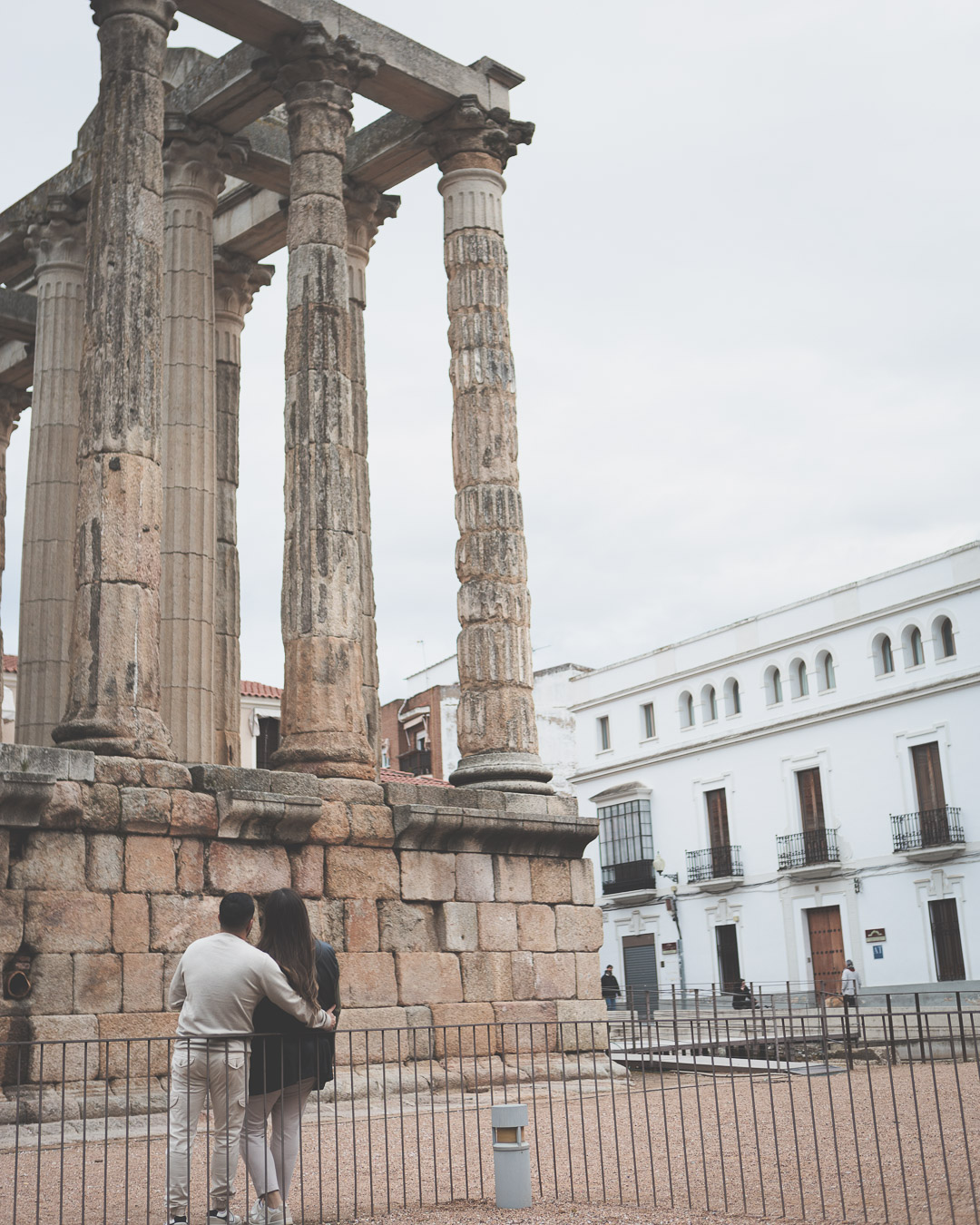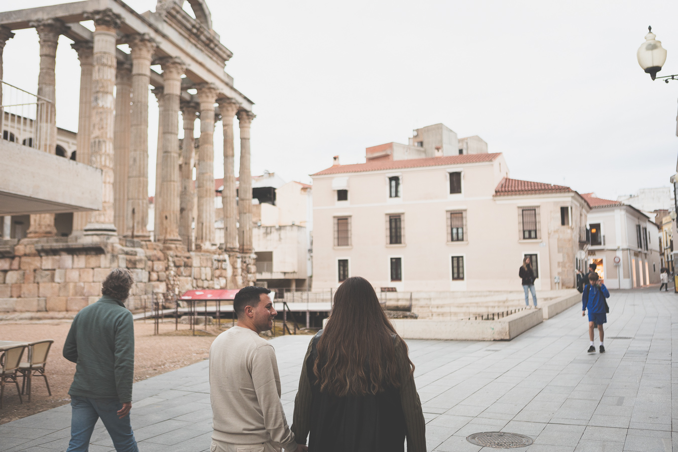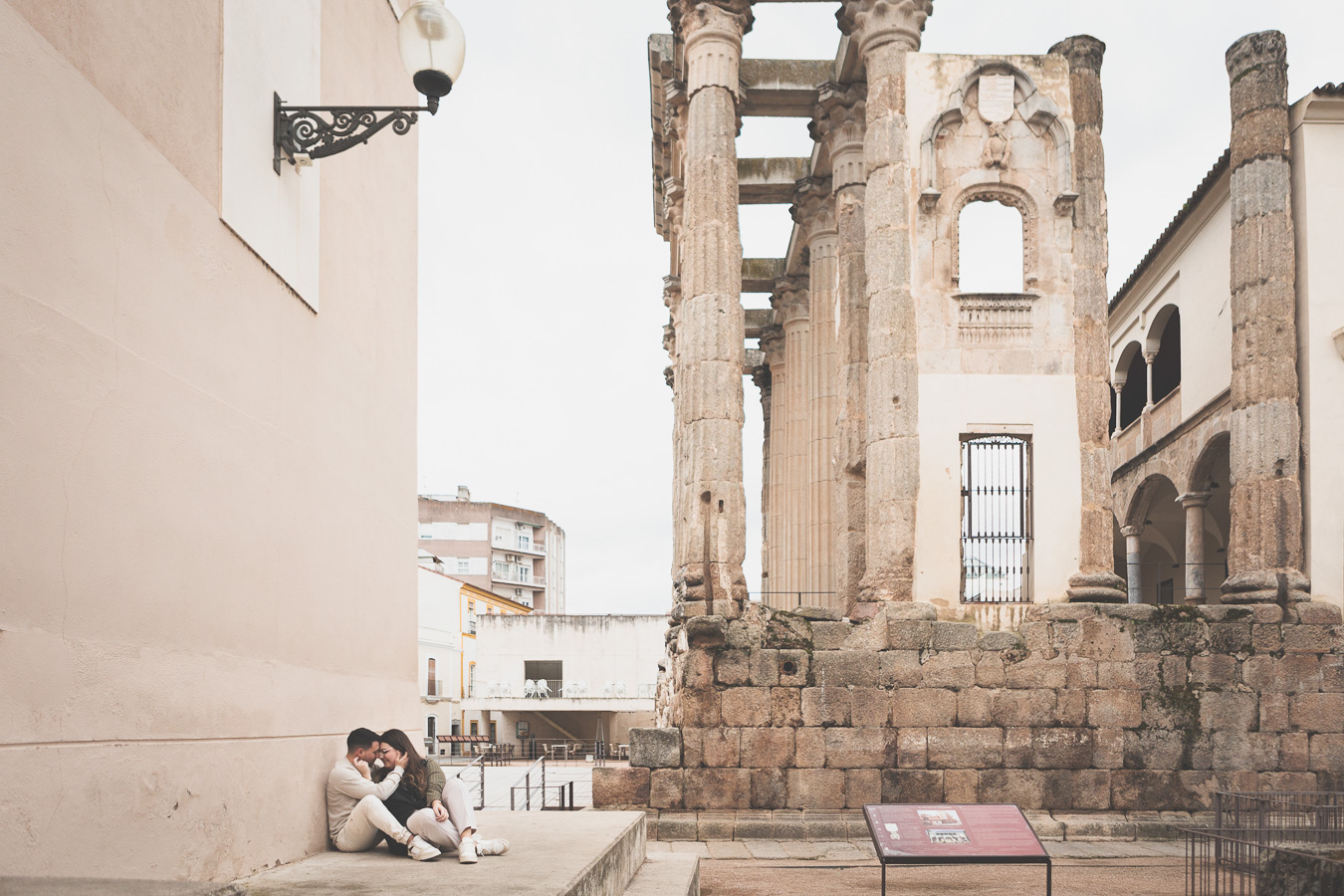 Nuestra última parada fue el Templo de Diana. Entre sus majestuosas columnas, la sesión cobró un aire mágico. La mezcla de lo antiguo y lo moderno, de la historia y el presente, creó el escenario ideal para cerrar la sesión con imágenes que transmiten la esencia de su amor: fuerte, auténtico y atemporal.
