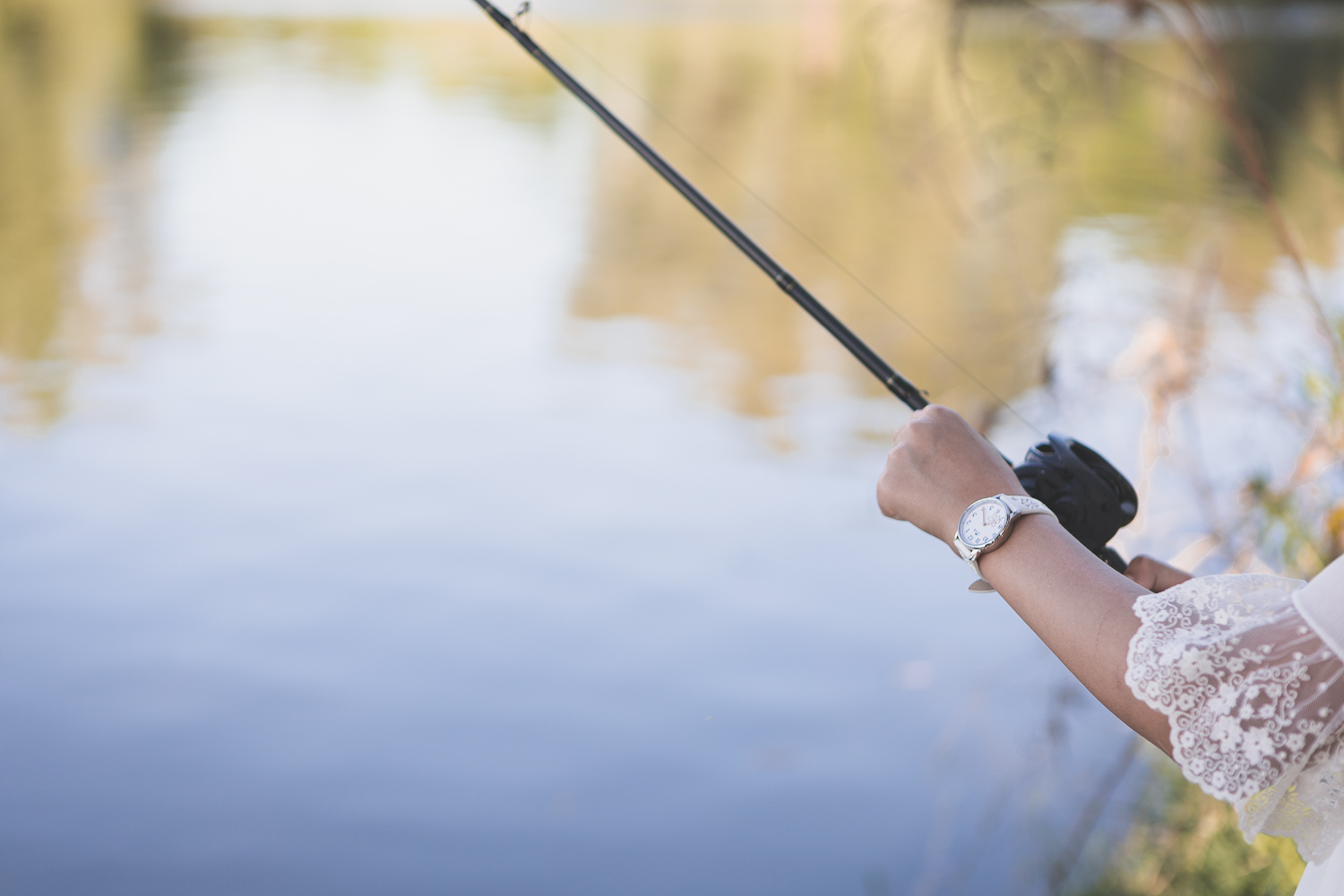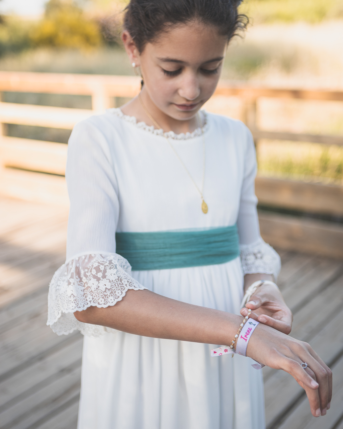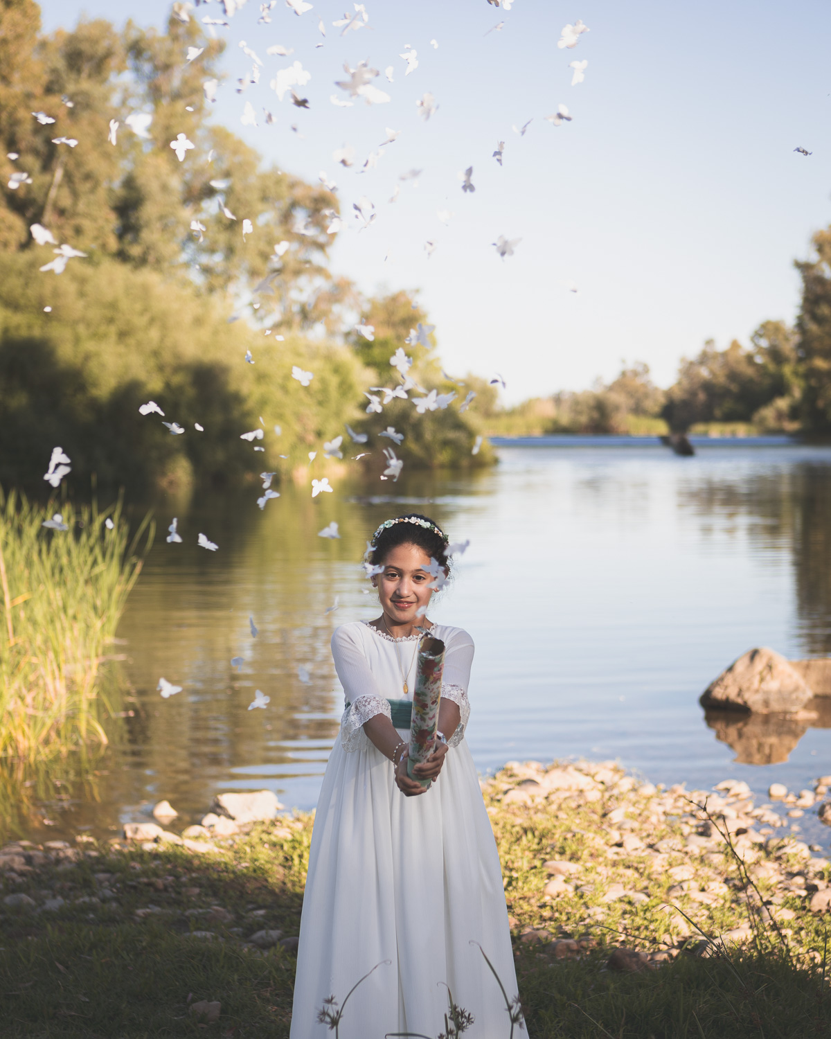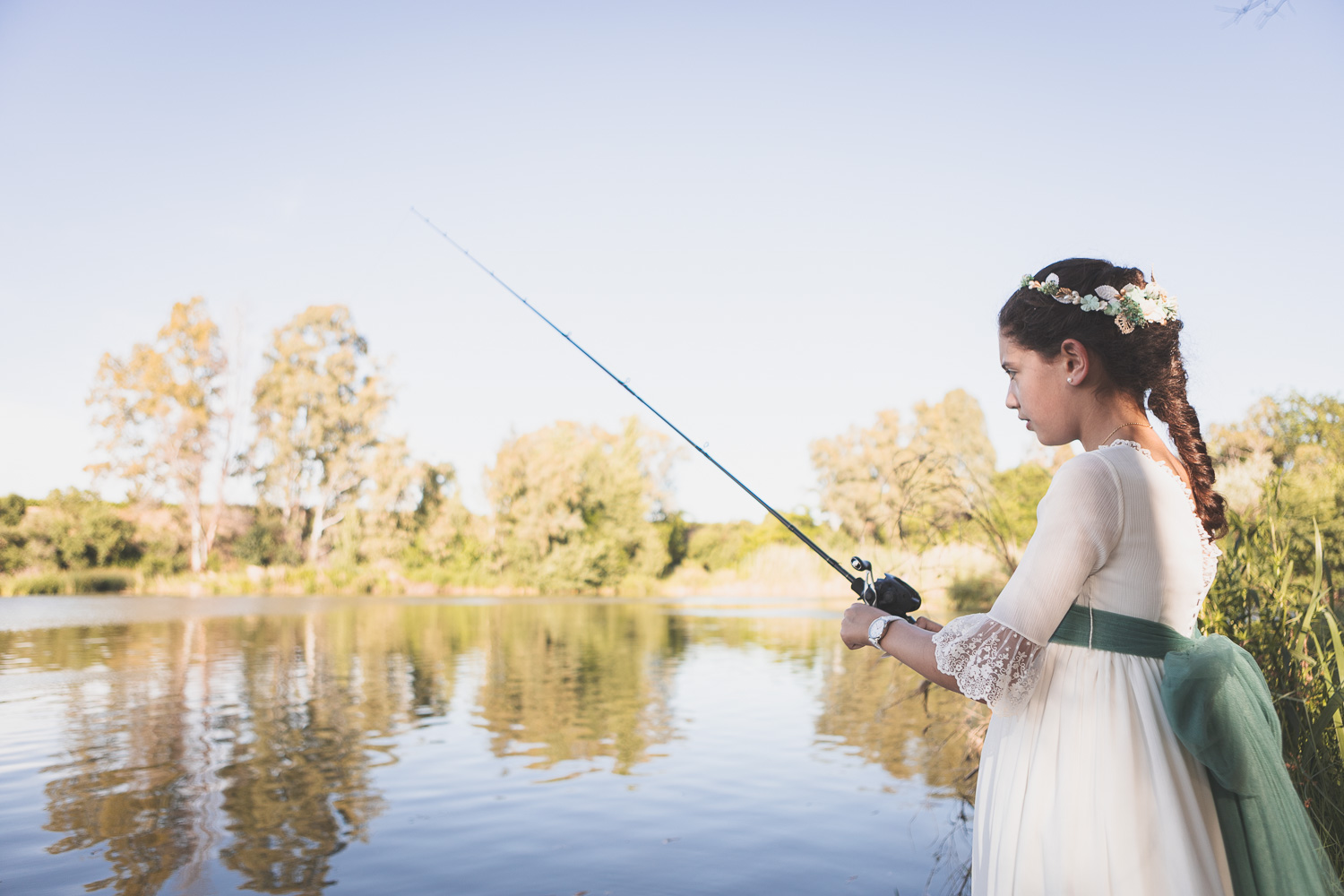 Además, Irene tiene una gran afición: la pesca. Así que no dejamos pasar la oportunidad de inmortalizar su hobbie favorito, haciendo que las fotos no solo hablen de su comunión, sino también de lo que la hace única.